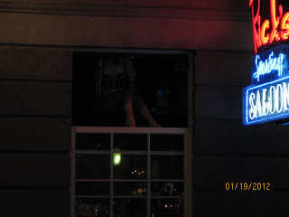 Then we went on the walking cocktail tour. Another good choice. It wasn't exactly what we thought it would be, but so much more. The tour guide was a retired high school English teacher, who actually developed the tour. I think he must have spent alot of time drinking in a bunch of bars after retirment. No problem with that!! Well, we went into four bars while on our walk. Oh, and in NO you can walk on the streets with a drink as long as it is in a 'to go' cup. Each of these bars/restaurants have a history and a special drink so we were able to order them. Fortunately, Russ and I shared. In one of these restaurants, we were able to go into dining rooms which the public are not generally allowed into. Our guide, Joe, has written a book with the history on these sites as well as the 'recipes' for these drinks, so of course we had to buy one. Of course we will be using it once we get home!